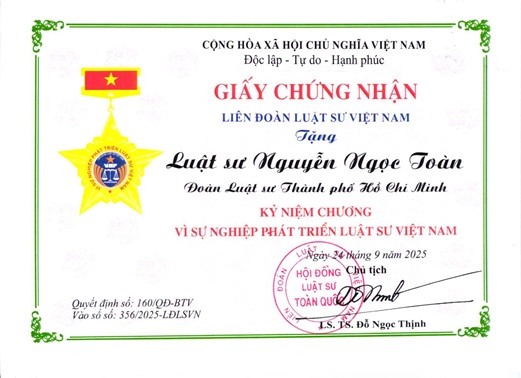 Toan is the member of the Ho Chi Minh City Bar Association, the Ho Chi Minh City